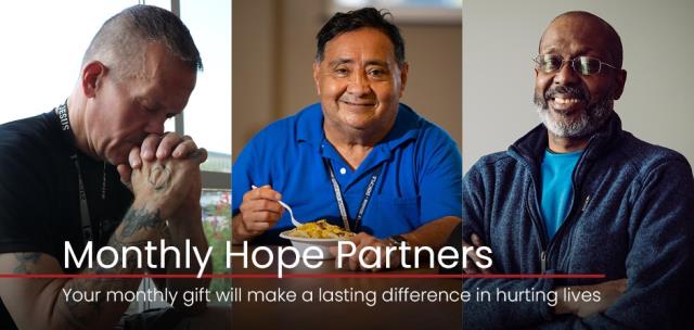 Our Monthly Hope Partners like you are the heroes our neighbors in need can count on. Your monthly support will change lives and create lasting hope. That’s why becoming a monthly partner with the Mission is so important – YOU are providing meals, shelter, and above all, hope to those who turn here for help each month.